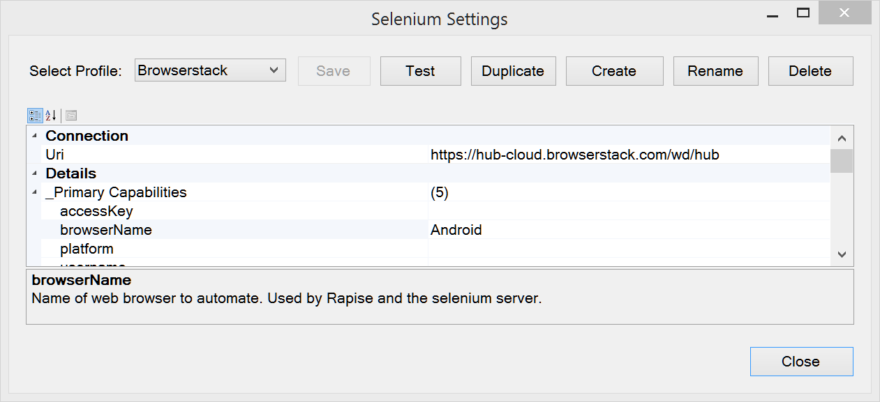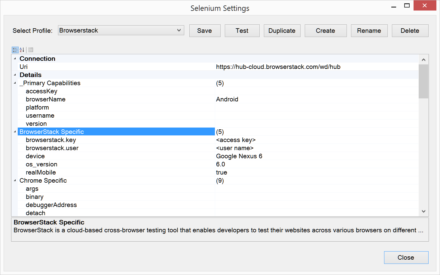This function receives the name of a configured profile and must return capabilities required to connect to a remote browser at BrowserStack.