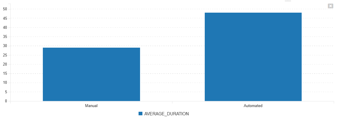 Note that this is a simple query that simply averages all test runs for automated vs. manual execution. You can modify the query to only look at specific types, statuses, etc. as well.