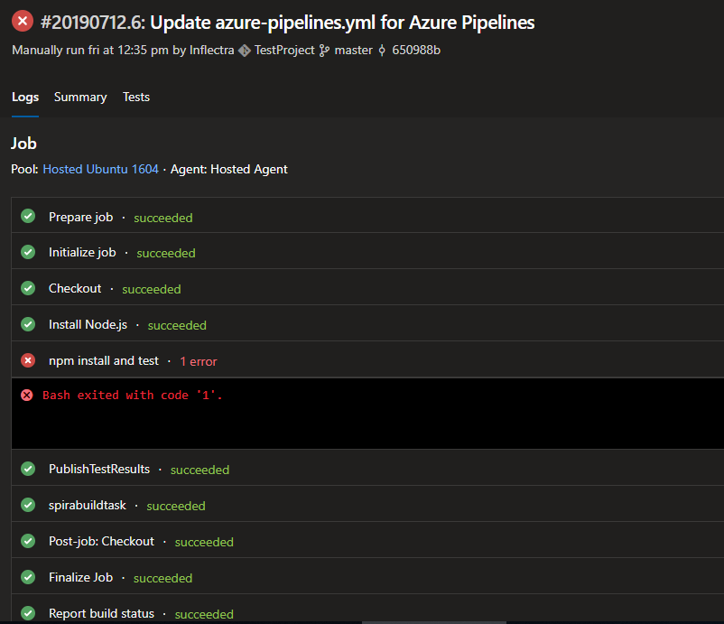 With the help of our intern, Peter, we have crafted an incredibly simple way to report builds from DevOps Pipelines directly into Spira.