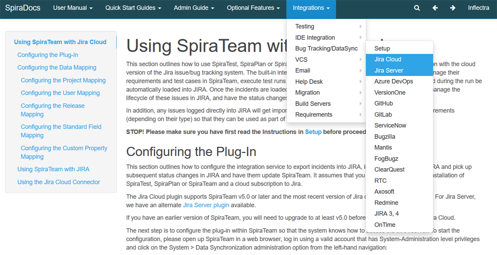 We have updated our Spira Documentation website (known as Spira Doc) to have separate pages for Jira Cloud and Jira Server: