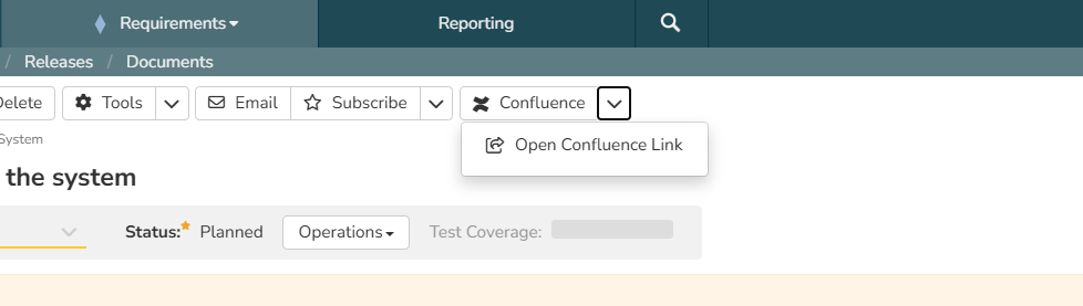 With a single click, users can open an existing Confluence page tied to a requirement, or generate a new one — complete with pre-filled metadata and traceable links. This eliminates manual copy-paste routines, reduces human error, and dramatically speeds up documentation cycles.