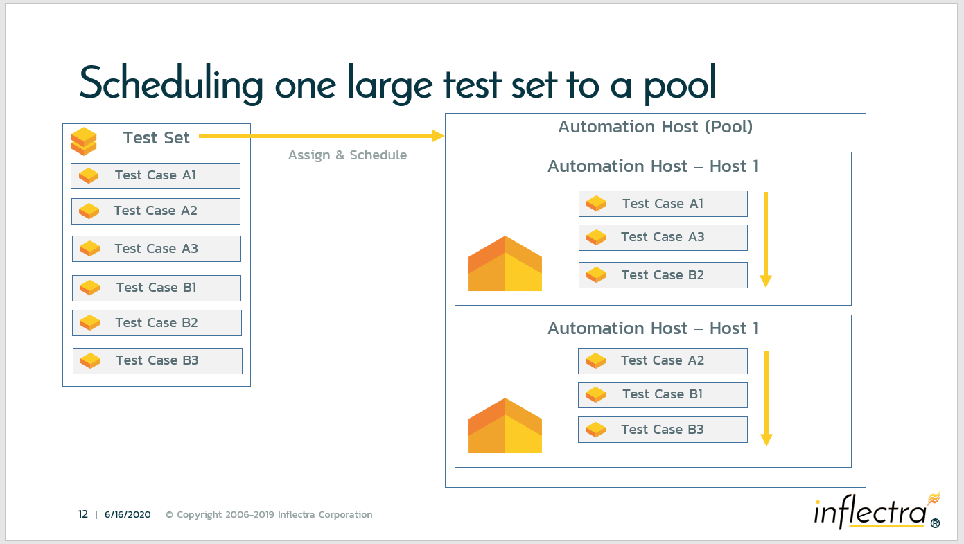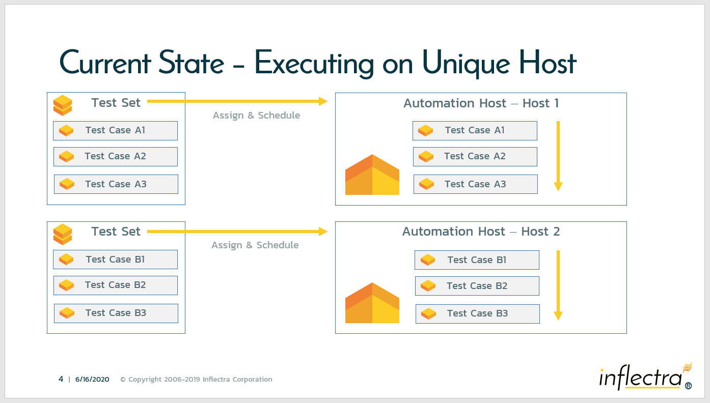 This meant that if you had two sets to execute, you would assign each test set to run on a unique machine (automation host) individually.