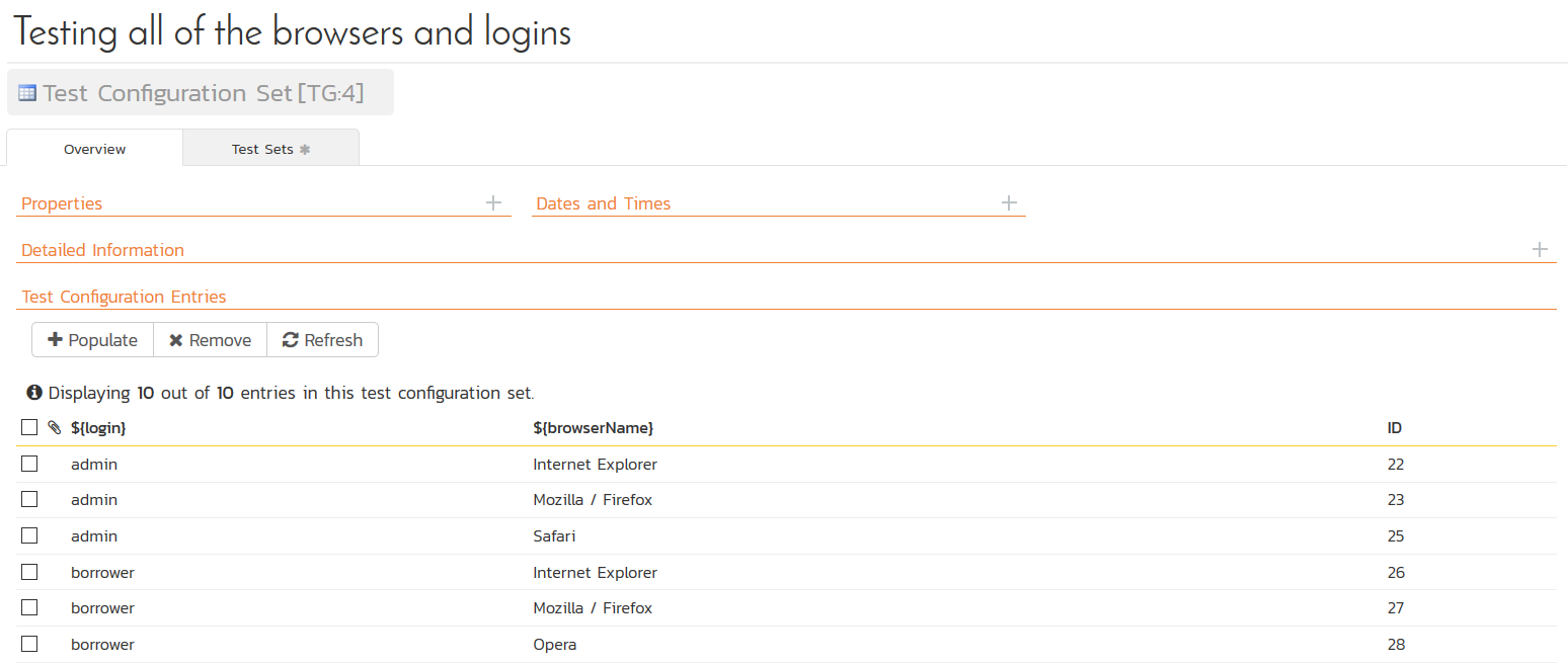 Test configurations can also be used to test against different sets of logins, user profiles and other test data in addition. With RemoteLaunchX, you can schedule tests to run against different automation hosts, and each of the hosts will execute the set of test cases multiple times, one iteration for each unique combination of parameter values in the test configuration set. This allows you to perform large-scale automated regression testing on different platforms and have a central platform for orchestration and reporting.