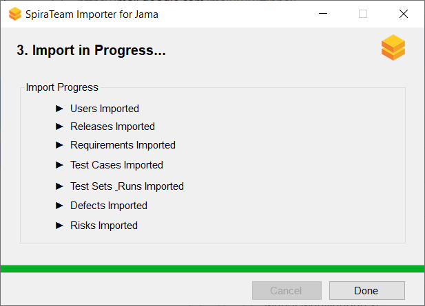 The Jama test runs will be imported into Spira together as Spira test runs.