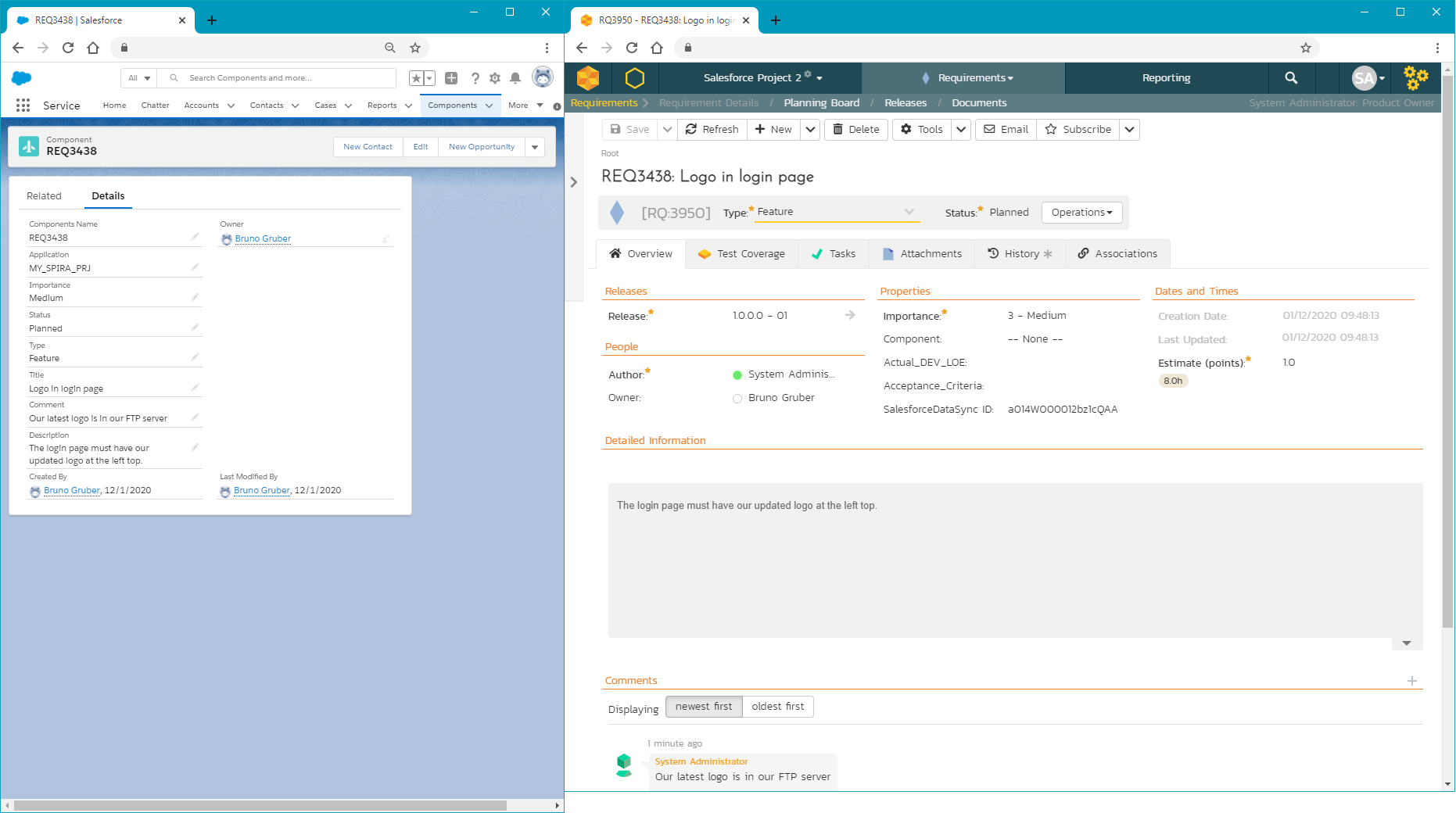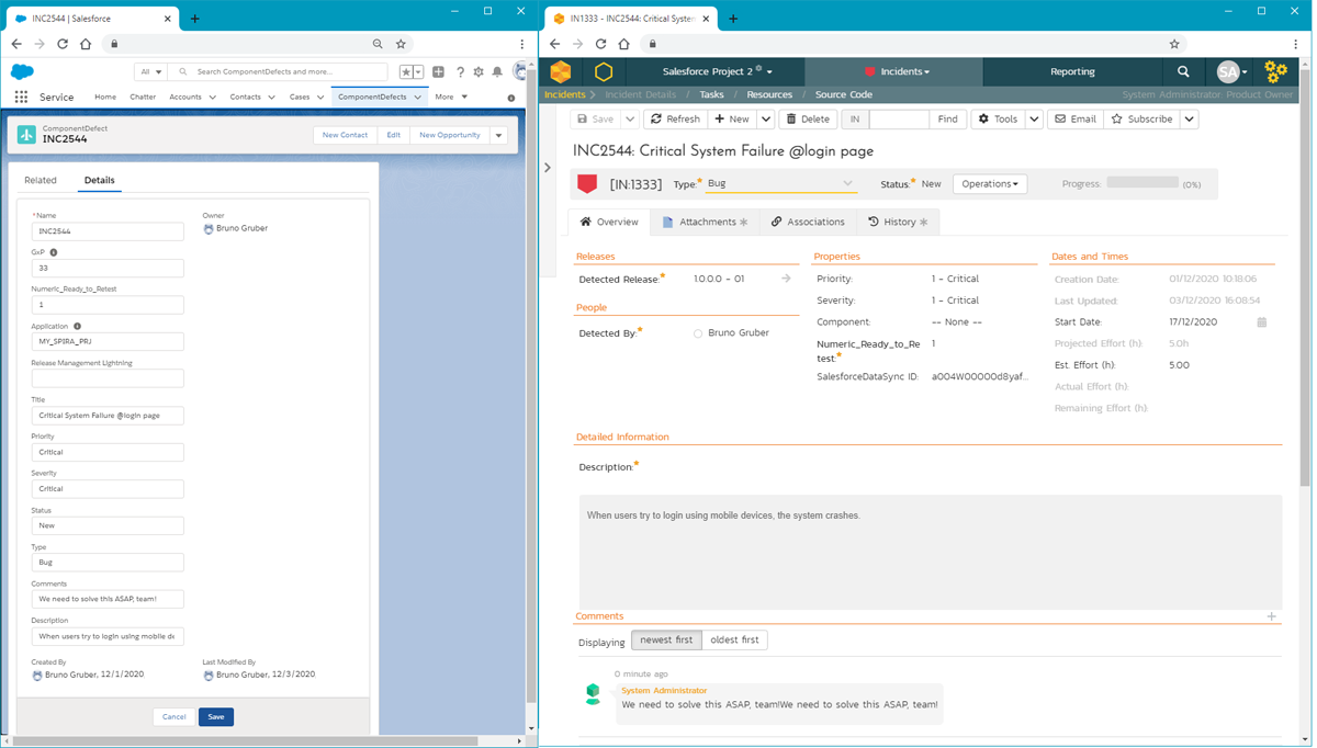 Our new integration with Salesforce will synchronize changes from different Salesforce objects with Incidents and Requirements in our Spira platform (SpiraTest, SpiraTeam, or SpiraPlan):