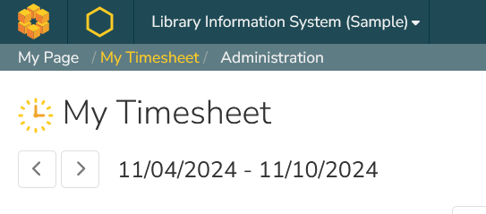 Users can access the timesheet functionality by going to the My Page icon on the top-left of the application, then clicking on the My Timesheet entry in the sub-header.