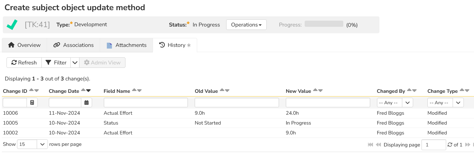 Where you have multiple timesheets reporting time, they will be shown as individual history entries: