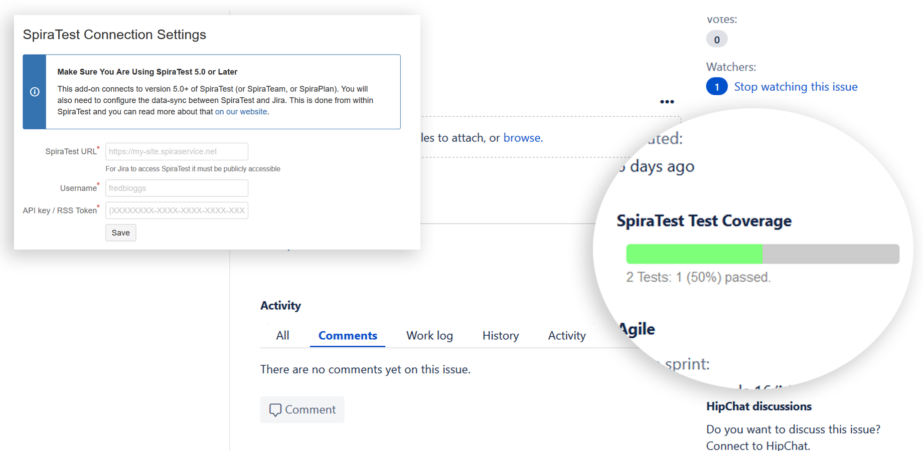 The SpiraTest for Jira add-on lets you easily and quickly track the test coverage of any issue within Jira: