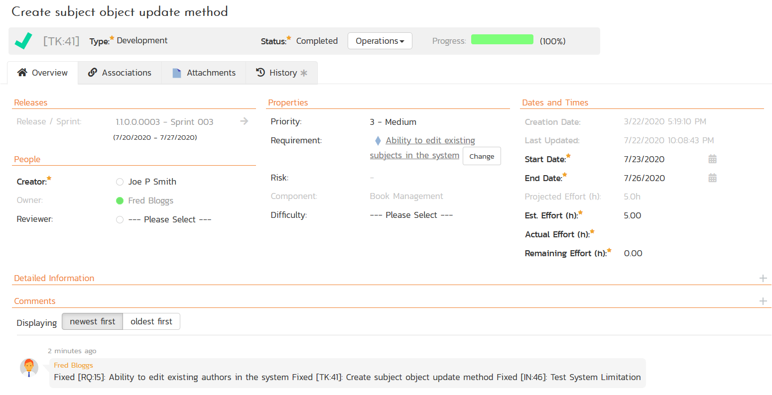 As an example, consider the case of committing a change using Tortoise, and associating that change with artifacts in Spira that are assigned to your user.