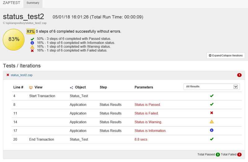 When you execute automated visual UI tests in ZAPTEST, there are built in reports and metrics available for verifying your quality assurance and testing activities: