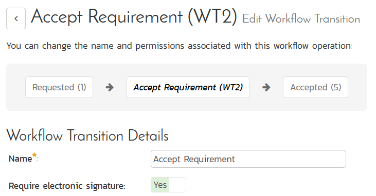 Now that you have updated the permissions, you can now set the Electronic Signature options to the appropriate transitions: