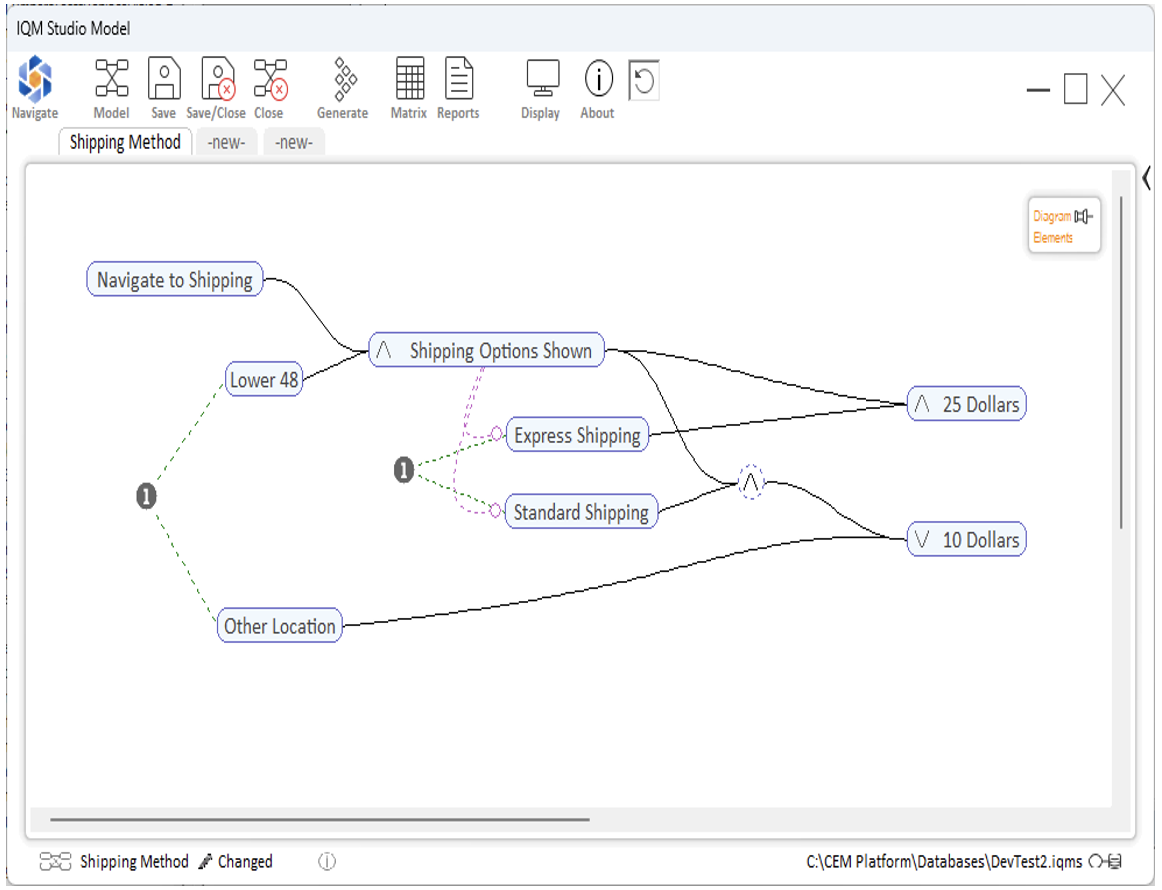 Here is another example showing a Cause-Effect Model created from a User Story about a choice on shipping method depending on your location within the U.S. (see figure 3). This Model can generate 3 clear Test Scenarios that cover all 11 possible paths through this model. The rules are also very clear for development.