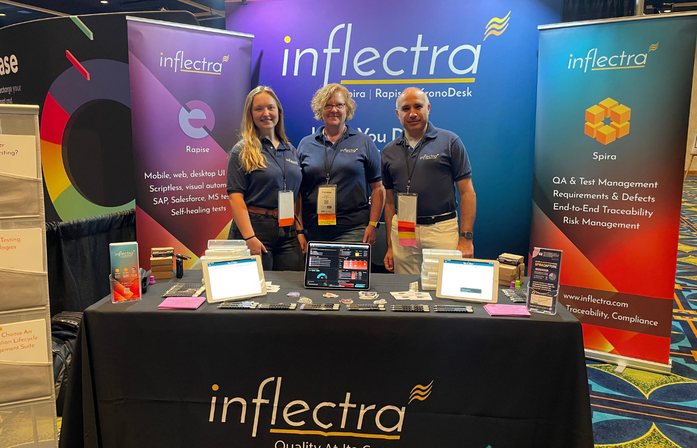 From September 23-27, the STARWEST 2024 conference was abuzz with excitement, and Inflectra was right in the middle of it all! Our booth became a hub of energy, drawing visitors with vibrant displays and interactive demonstrations of Spira demos, Rapise.