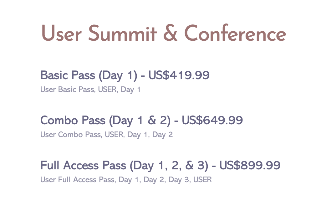 Below you can find InflectraCON 2023 User Summit and Conference ticket prices and validity.