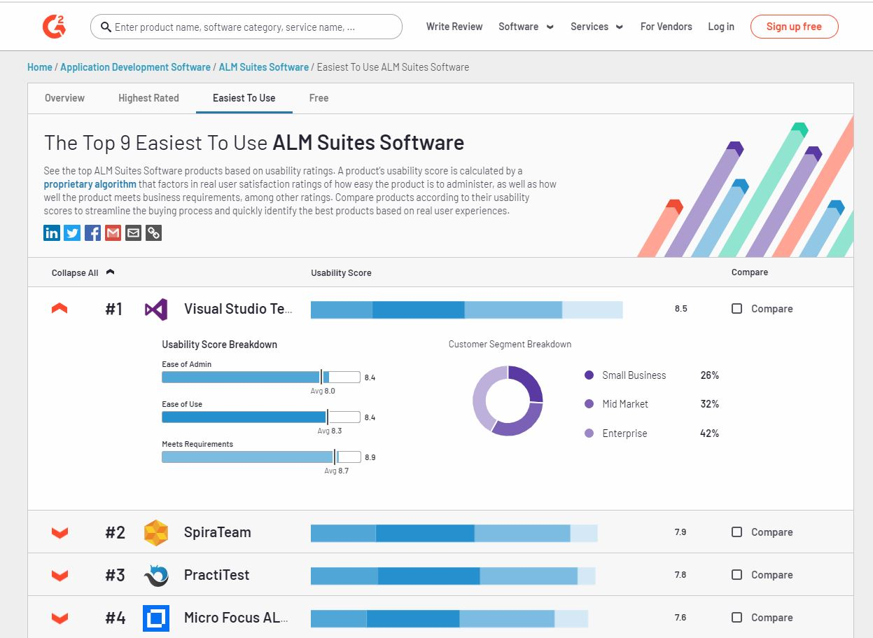 SpiraTeam was also recognized for its ease of use in the G2 report on the Easiest To Use ALM Suites Software in July 2020. Here SpiraTeam is in the 2nd place after Visual Studio.