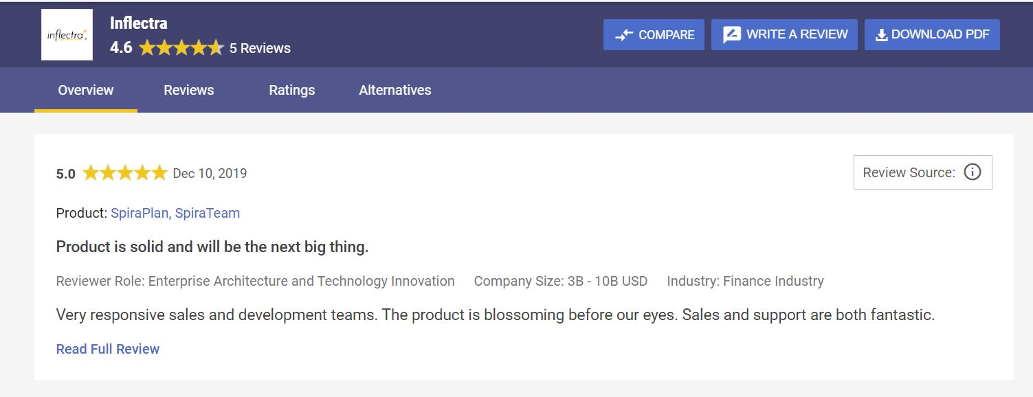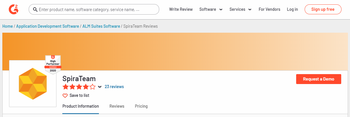 But in July 2020, the site went farther and listed SpiraTeam in the top three ALM solutions under the category!