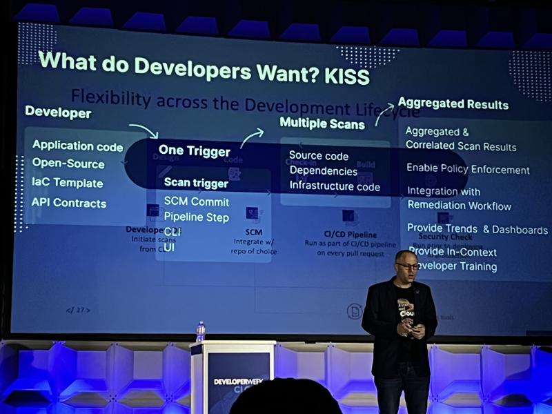During the opening keynote talk, the speaker Ori Bendet from Checkmarx discussed the Clouds on the Horizon, What Lies Ahead for Security, Development and CloudSec teams.The talk focused on how there are competing demands on cloud native development, to balance the "Shift-Left" imperatives of increased speed, increased use of common open-source components, platforms and libraries, with the need for ever increasing security, quality and compliance of the systems in production.