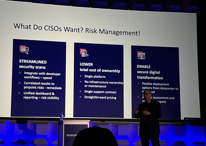 They want to be able to manage their organizational and technical risks as much as possible. For example, they want to ensure that all developer activities and workflows are monitored and traced back to user needs and documented features. They want to have a smaller set of comprehensive platforms with strong Service Level Agreements (SLAs) rather than using whatever latest tool an individual developer wants. Whereas a developer is happy to use the latest API or feature from a cloud provider to simplify their process, the CISO cares about re-usability, redundancy and avoiding vendor lock-in. Maybe using a standard method that is not cloud-specific is more important than using the latest feature.