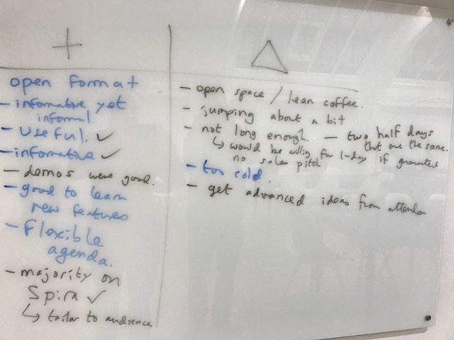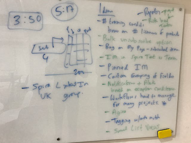 One of the key ideas behind the user summits was to make them useful for users and not sales-oriented events. The goal was not to try and upsell or cross-sell customers, but to present our plans for the future and get their feedback. So during the meetings we presented the ideas for the future and captured on whiteboards the feedback and suggestions: