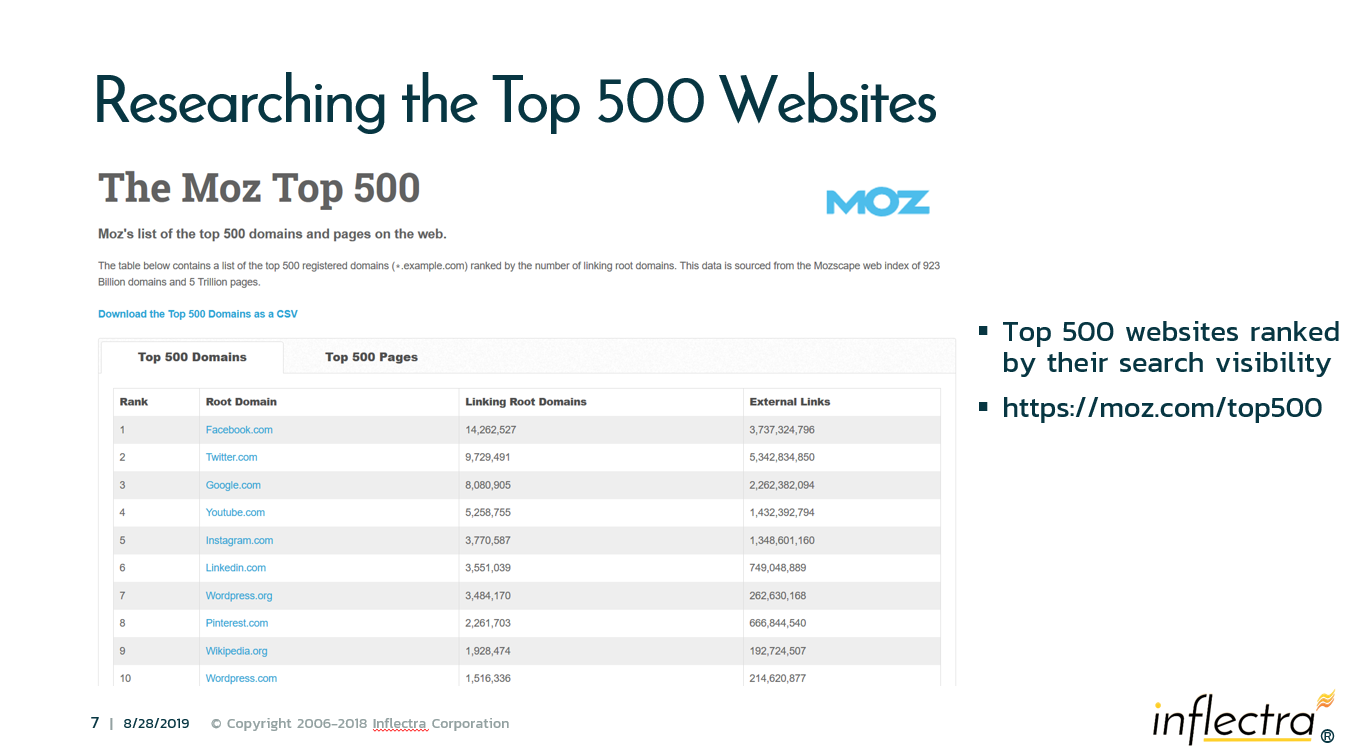 In this study, we analyzed the 500 most popular websites as ranked by the Search Engine Optimization (SEO) tool MOZ. This Moz 500 list of websites let us analyze not only the websites statically, but also by taking repeated snapshots over time, how frequently they changed and how the changes would impact the ease of test automation.