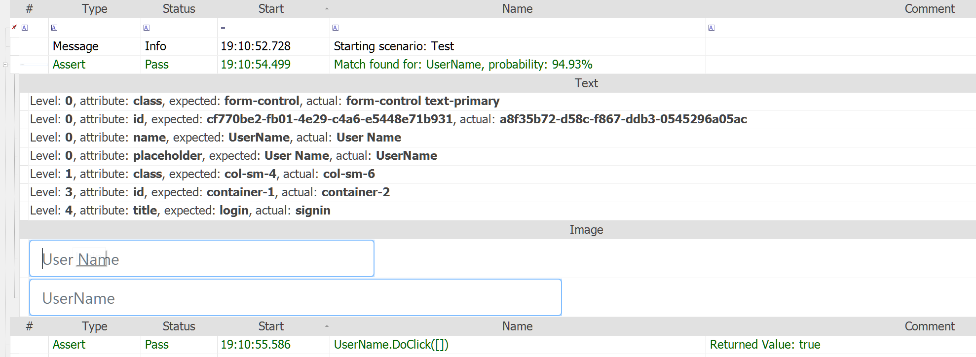 The healing notification indicates that an element was found with some confidence, it is a number from zero to 100%. In the notification details you can find the difference between recorded and matched elements. You can also see the images of the recorded and found elements. This information is a clue to either accept the found element or manually fix the test.