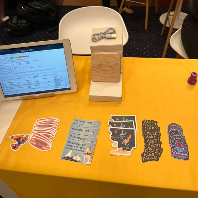 The team assembled in the Expo to prepare the Inflectra booth, ready to demonstrate SpiraTest for test management, SpiraPlan for project, program and risk management, and of course Rapise for test automation. The Expo provides a place where people come to explore the latest solutions, technologies, and tools in testing. The Expo also provided a place to network with other vendors and attendees and see what the latest developments are in the industry. It's also a great place to learn about the news and plans from both our competitors and partners.