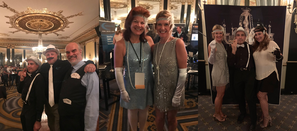 One of the unique elements of Agile Testing Days, a testament to its American-German collaboration is the traditional costume party (aka "fancy dress" to Brits like me). This year the theme was The Roaring 20s, so sporting a mixture of Flapper, Great Gatsby and The Untouchables outfits, #TeamInflectra and our friends from TechWell looked the part.