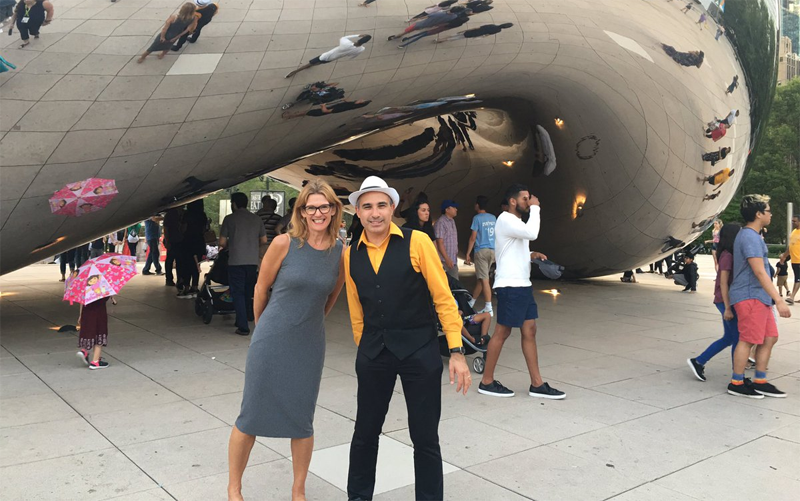 Since we knew that we'd be sequestered in the gilded Hilton Palmer House hotel (famed for being the creator of The Palmer House Chocolate Brownie) for the next two days, the team took the opportunity to take part in the traditional walking tour organized by the effervescent Owen Gotimer from TechWell. The tour took in many legendary Chicago sites, ending up in Millennium Park by the amorphous yet mystical "The Bean" sculpture.
