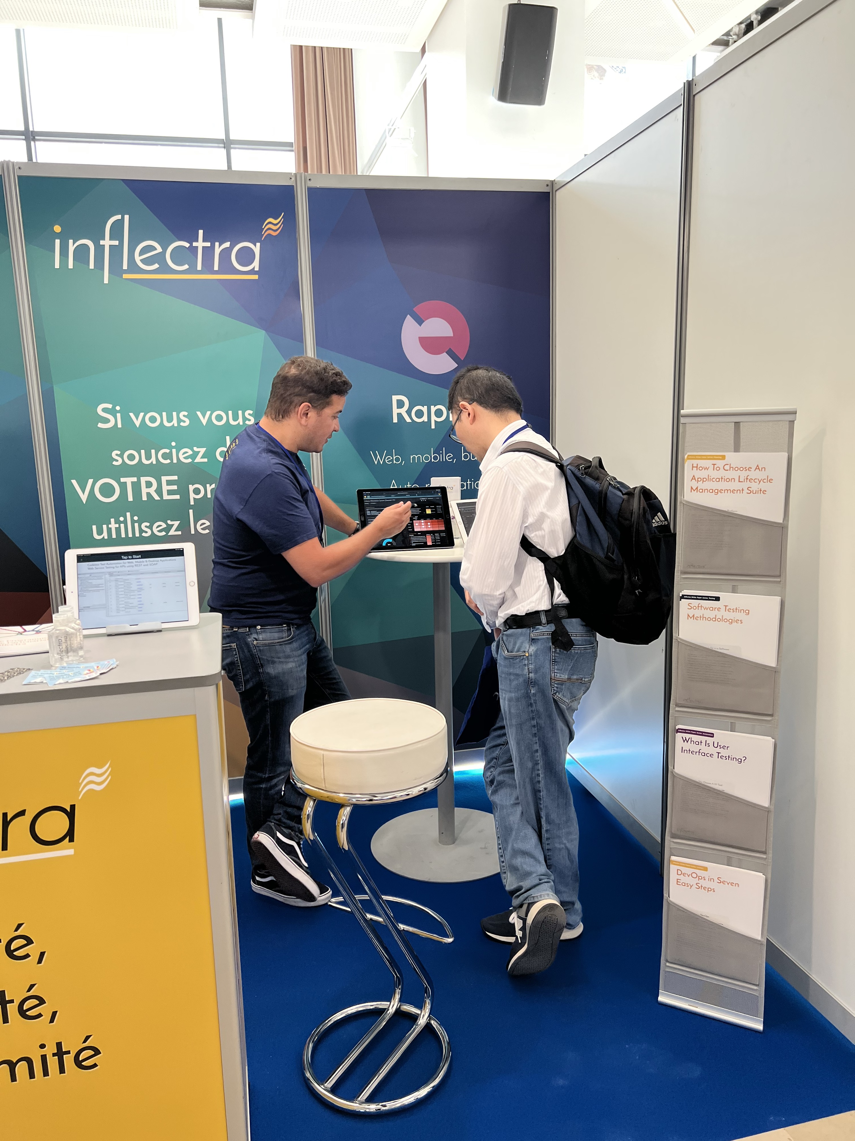 On June 14th, 2022, #teamInflectra had the opportunity to attend JFTL, la Journée Française des Tests Logiciels, for the second time ever. This year marked the 14th anniversary of the conference, and it brought more than 1,200 participants and 40 sponsors together to participate in 16 talks, 4 conference tracks (Tendances et Métiers, Automatisation, Méthodologies, et Techniques), 9 tutorials, and a large expo hall for sponsors and attendees to mingle. For #teamInflectra, this conference presented us the chance to emphasize our presence in the French market and to make long-lasting connections with experts and professionals in the testing industry. Here’s a recap of our experience at JFTL.