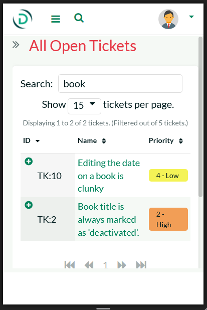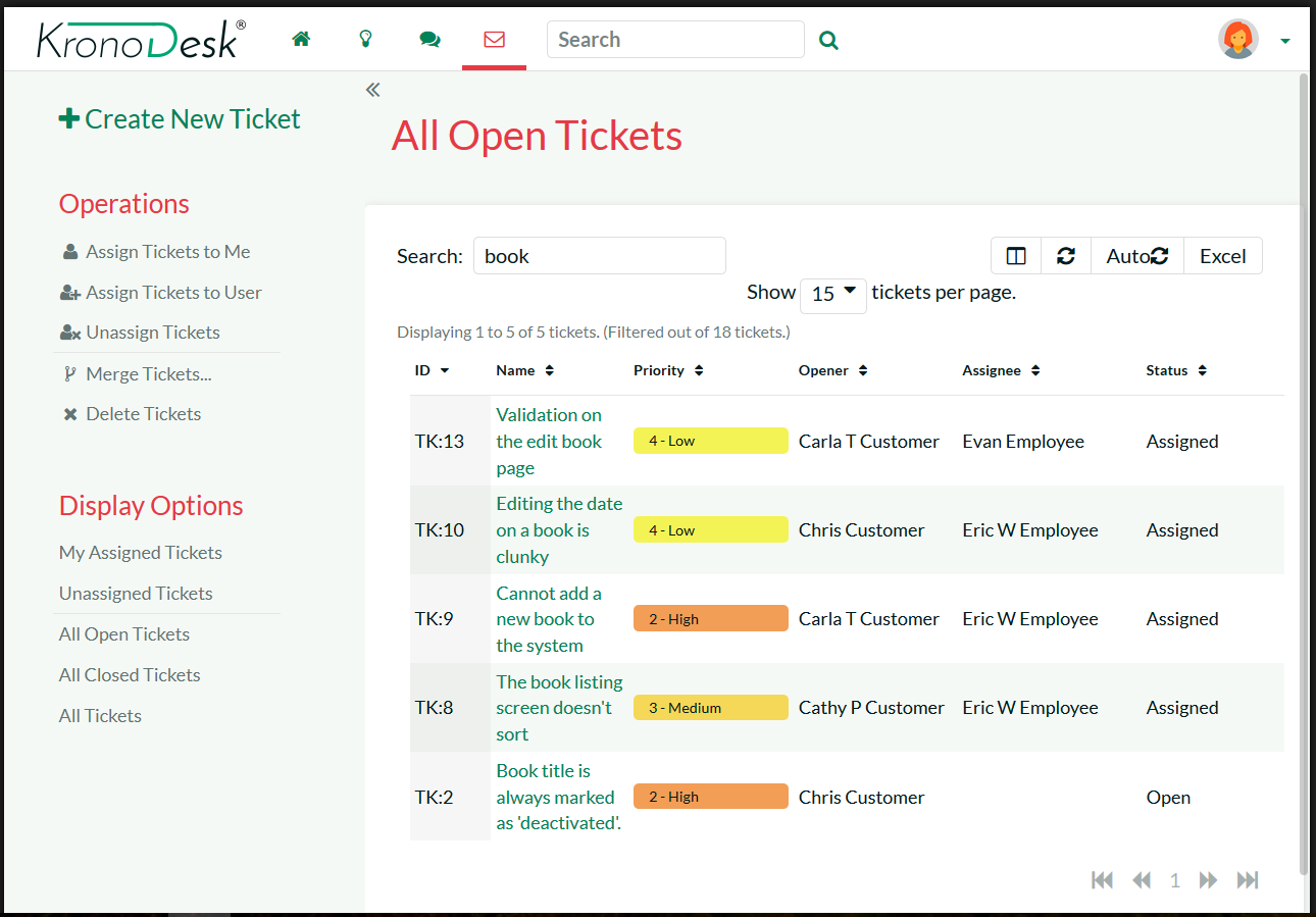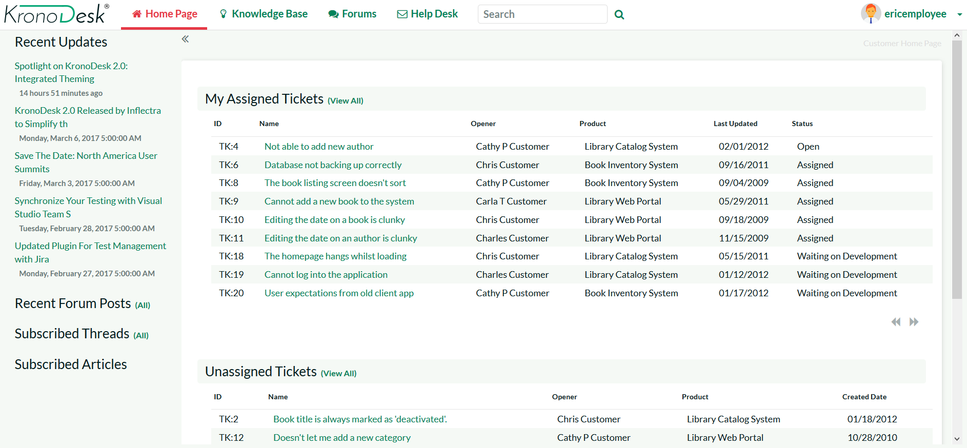 For full-size devices, KronoDesk maximizes the available screen real estate to display important information to the customers and employees, including the status, priority, dates and users associated with tickets.
