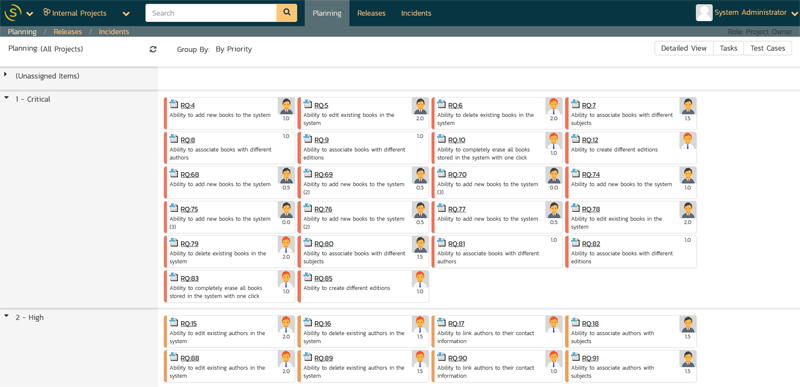 We have changed the page layout to reduce the time to perform common operations. In addition, we now offer additional display options to show the requirements organized by priority for the program backlog, all projects view, and for individual projects.