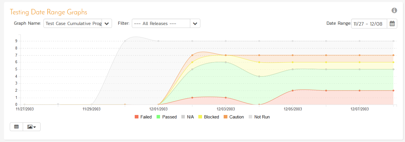 This providers an interactive, slick graphing experience, with nice tooltips, the ability to click-through data, and enhanced ability to export graphs as bitmap images into other applications. In addition, we have added some new time-phased defect and test case graphs to the dashboards and reports (of which the one above is an example).