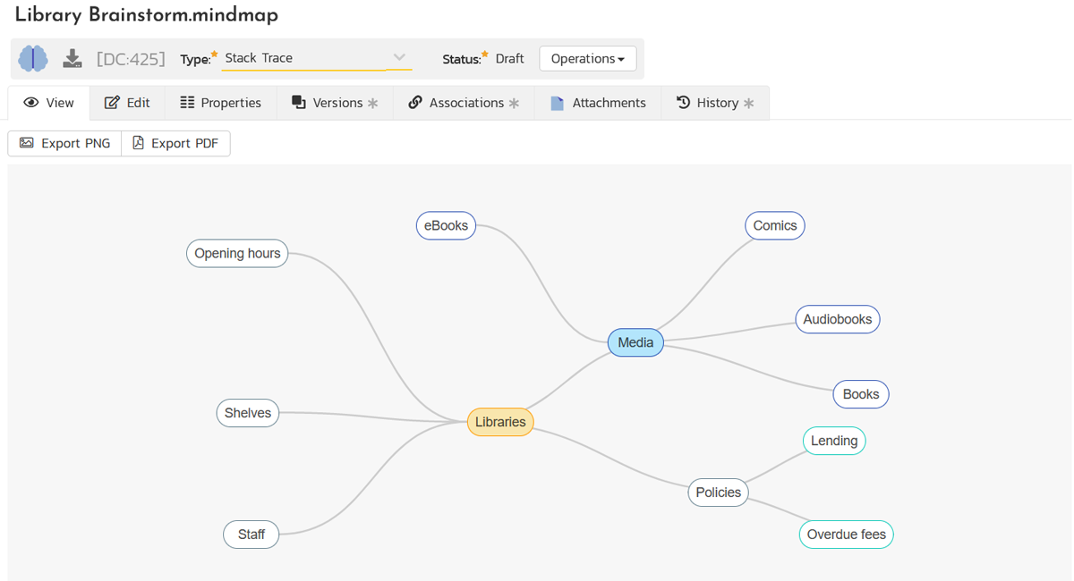 The mind-map diagram editor lets you quickly add new idea "bubbles" to a mind map (linked to the parent idea) and the system takes care of automatically color-coding them based on their proximity to the initial, central idea. That way you can focus on brainstorming, vs. manually changing the colors or adding lines.