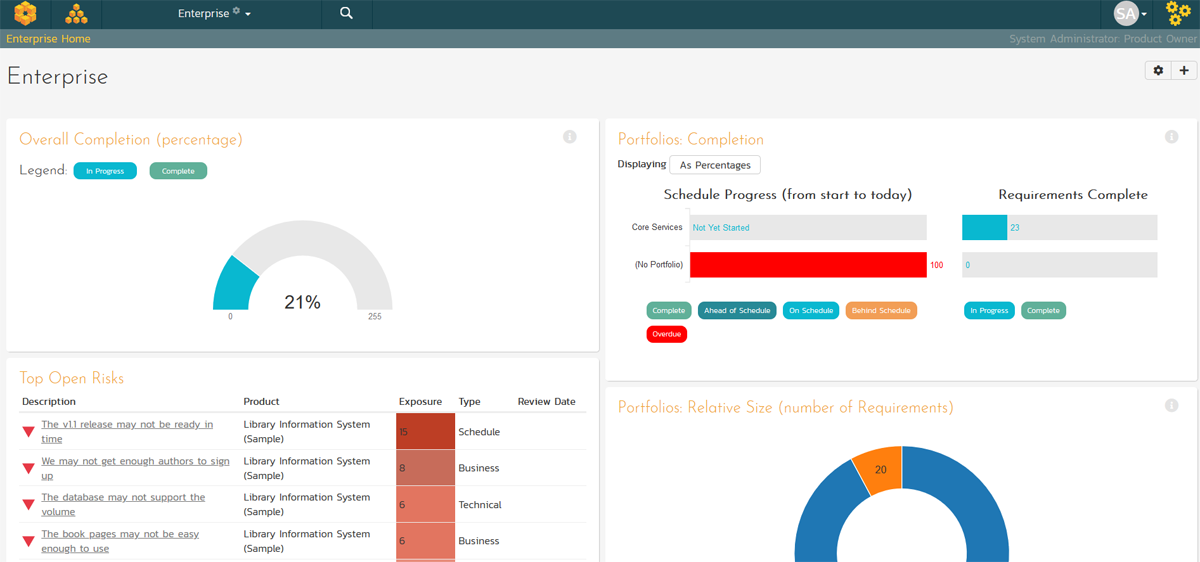 In addition, we have added a new top-down "enterprise" view for SpiraPlan that lets you see all of the portfolios, programs, and risks in a single view across the entire system.