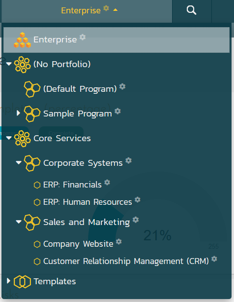 SpiraPlan v6.5 includes a new type of workspace, called a portfolio. A portfolio is a collection of programs, which in turn can have a collection of products. Previously SpiraPlan only offered products and programs, with no way to group and view multiple programs. In addition, the navigation bar includes a new "enterprise" view that will give you a system-wide view of the different products.