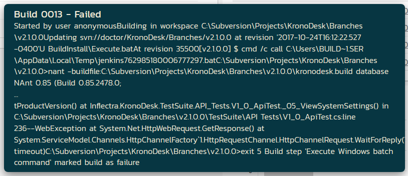 You can drill-down to the specific program, product, release, sprint, and/or build to get more information. The build also displays a handy tooltip that shows you the most recent information at a glance: