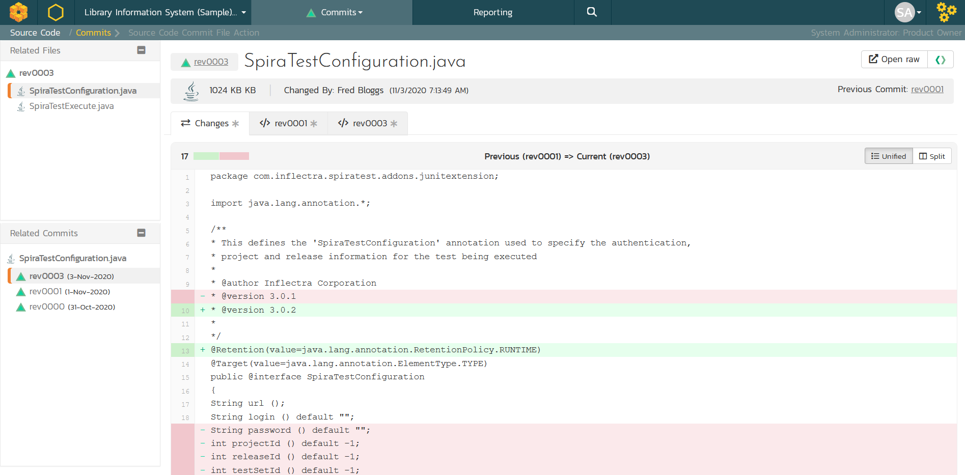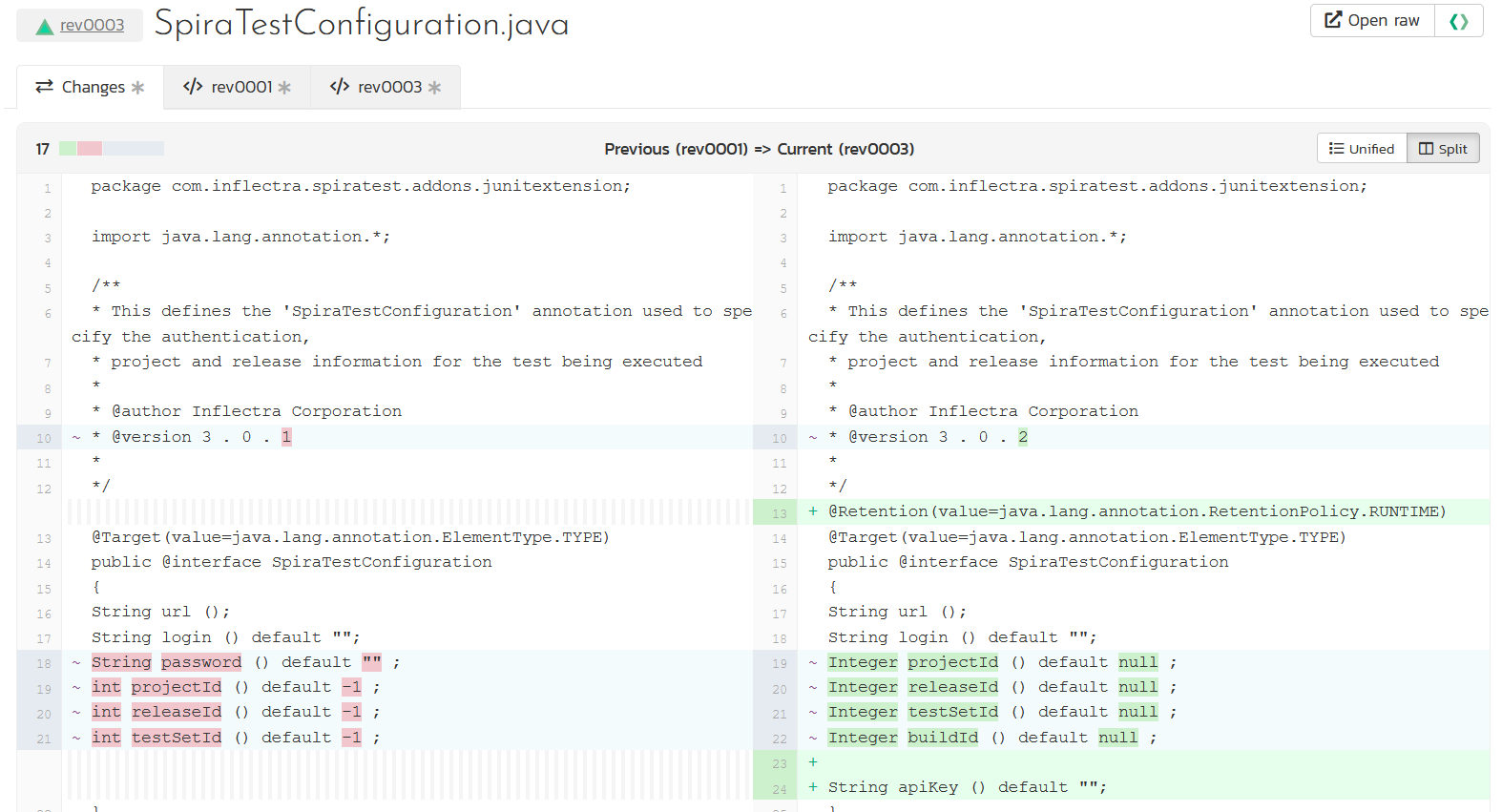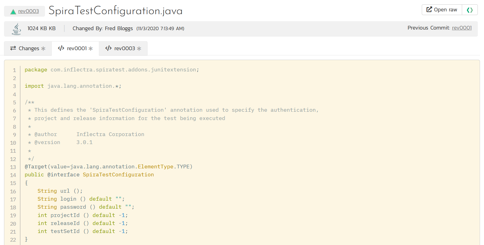 This is a completely new page we have added to Spira to allow you to see quickly and easily what has changed in a specific file in a specific commit (or revision):