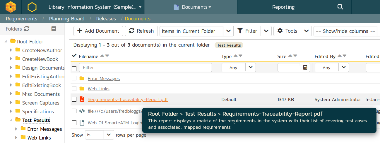 Many of our customers come from a traditional document-centric world, where their requirements, test cases, and other project artifacts were actual physical documents. When they move to SpiraTest, SpiraTeam, or SpiraPlan, they often need a way to store and manage the results of their testing and validation activities. Traditionally they would have documents such as a requirements traceability matrix or a final test report managed in a version control system such as SharePoint. They would then assign these documents to reviewers to be approved.