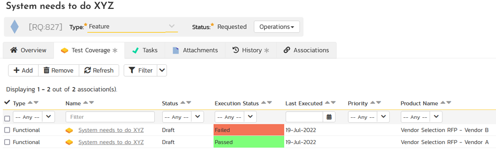Then each of the vendors can use the test case module to write their responses to each RFP requirement, using the test execution status to describe how well each requirement is met by their solution.