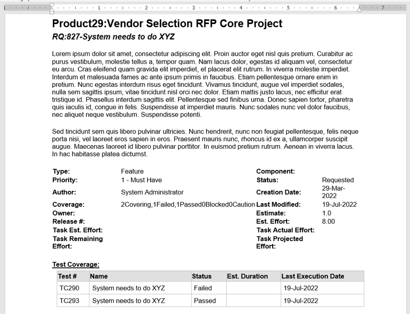 In addition, you may want to create standard test cases in the various vendor projects which are mapped to these requirements to capture how the vendors will support each of the requirements: