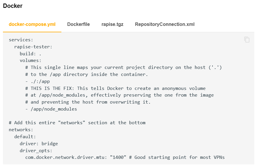 Rapise lets you run Web and API tests in any environment that supports Node.js. The Rapise Node.js-based RapiseLauncher, is a free utility that performs test execution on Linux, macOS, and Docker, and reports the results directly to Spira.