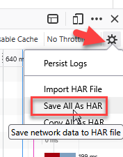 - Once you have reproduced the issue and you see that all of the actions have been generated in the Developer Network Panel (should just take a few seconds), right click anywhere under the "File" column and click on "Save all as Har" > Save the file somewhere convenient.