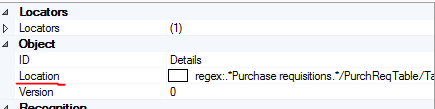 - Ex: «Purchase requisitions (1) - Purchase requisition: PR-002071, Data-driven/PurchReqTable/Tab/Pane/Tab/Pane/Pane/Financial dimensions» becomes «.*Purchase requisitions.*PurchReqTable/Tab/Pane/Tab/Pane/Pane/Financial dimensions».