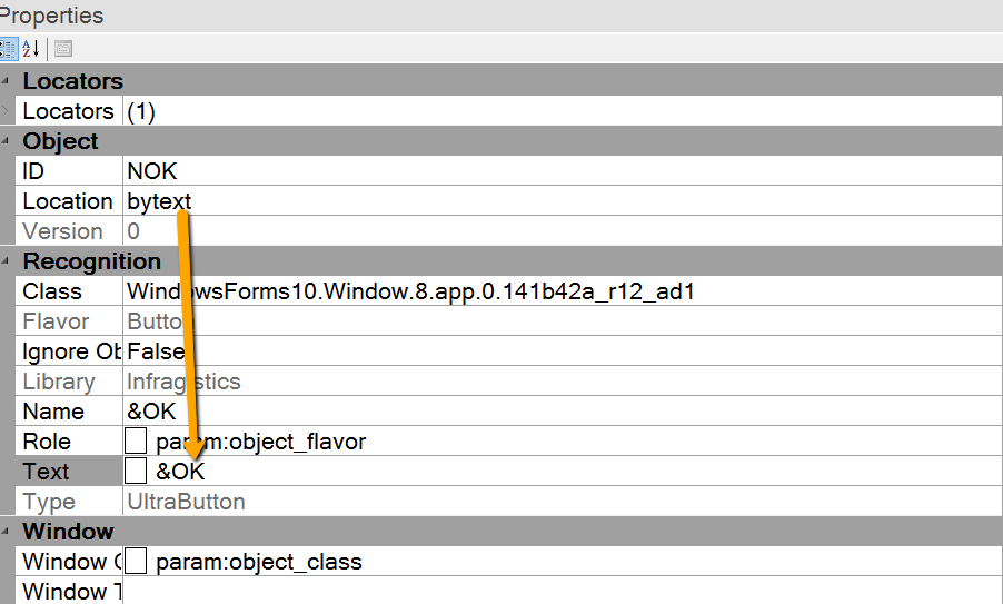 Rapise recorder tries to minimize unique values for the recorded object. For example, if object text is the same as object name then text one refers to name using param:object_name. If you want to use specific value then you may simply change param:object_name with actual value. I.e. &OK.