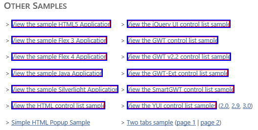var lnk = Navigator.DOMFindByText('View the sample HTML5 Application');