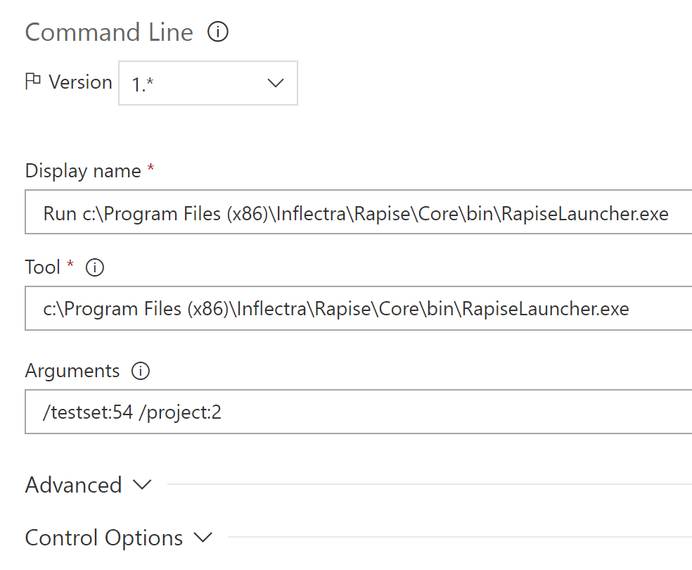 "c:\Program Files (x86)\Inflectra\Rapise\Core\bin\RapiseLauncher.exe" /testset:54 /project:2