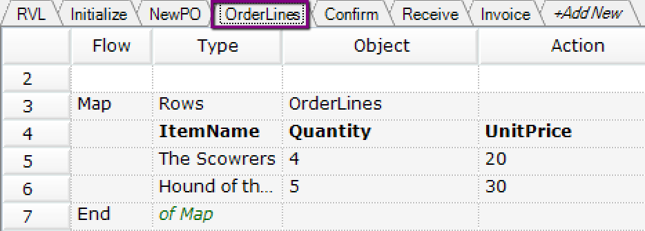 We defined order lines right in RVL. You may, however, easily put this data into external Excel spreadsheet.