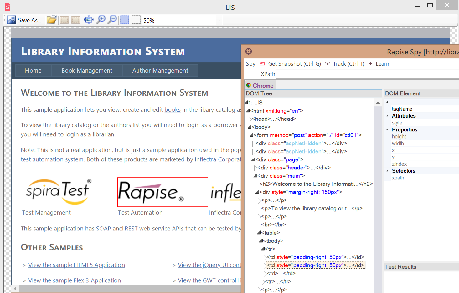 In Rapise 6.4+ you may use Ctrl-Shift-T shortcut to save the DOM snapshot and the screenshot of the page. Then one may load the snapshot (the screenshot must be in the same folder) and see elements highlighted.