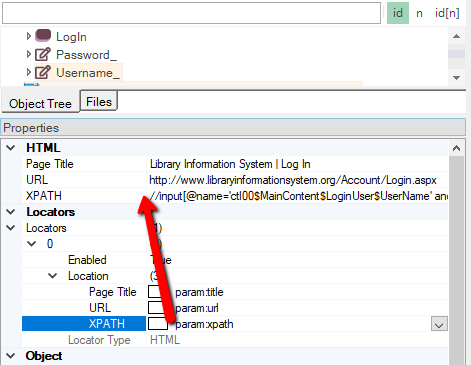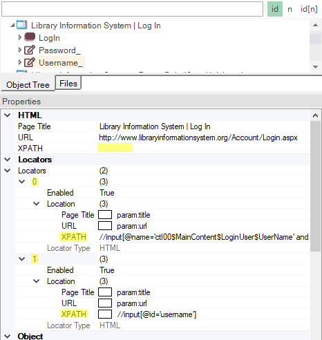 The script doing login interact with Username, Password and Log In objects. Let’s see the locator for the object Username_: