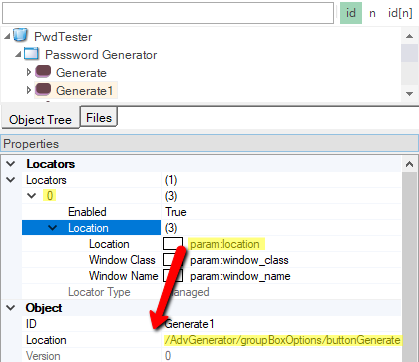 Note, that param:xpath is used by locator to refer to common locator parameters. Locator parameters are made to make object editing easier and more user friendly. Now we will need to use.
